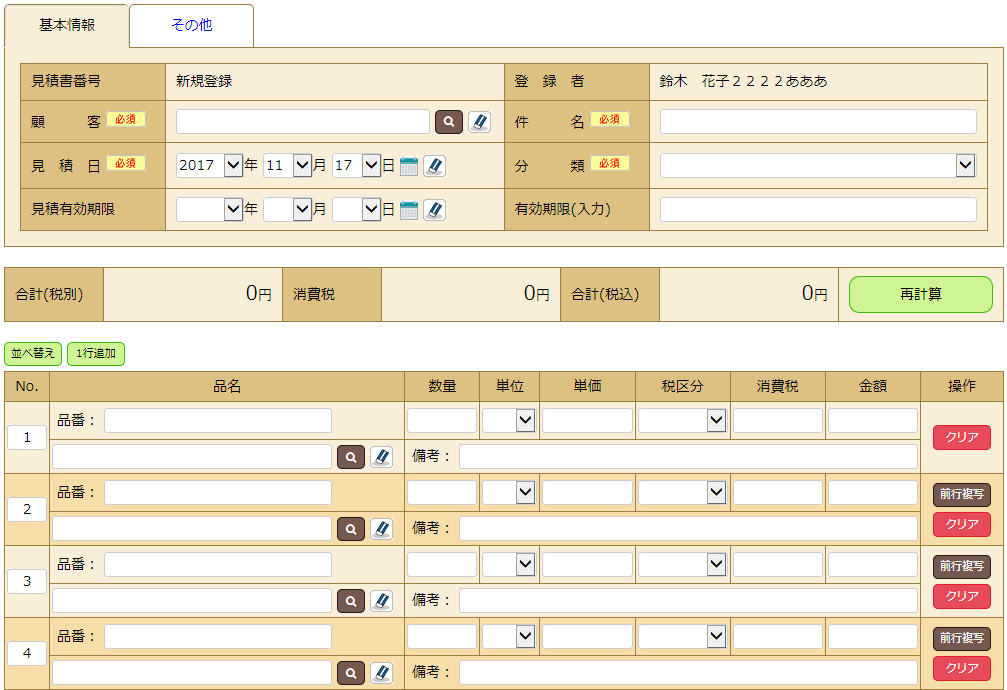 | 見積書最大行数 | 15行 | 45行 | 135行 |